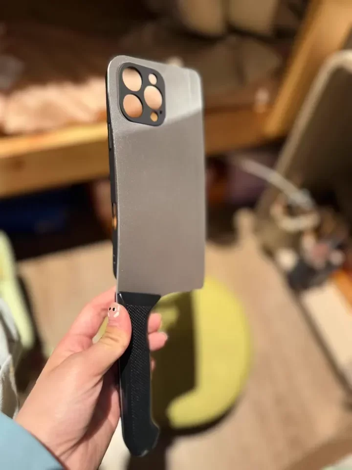თუ გინდა, რომ ყველამ შენს ტელეფონზე ილაპარაკოს – ეს ქეისი აუცილებლად გააკეთებს ამას. დიზაინი დაყრდნობილია საჭმლის დასაჭრელი დანის სტილზე, და აქვს მოცულობითი 3D სახელური, რომელიც ქმნის ილუზიას, თითქოს ტელეფონი ნამდვილი დანა იყოს. შესაფერისია ხუმრებისთვის, ორიგინალური საჩუქრებისთვის და უბრალოდ გასართობად. ქეისი იცავს ზედაპირულ ნაკაწრებისგან და უზრუნველყოფს კომფორტულ მოჭერას. იდეალურია მათთვის, ვისაც მოსწონს განსხვავებული სტილი და ყურადღების ცენტრში ყოფნა.